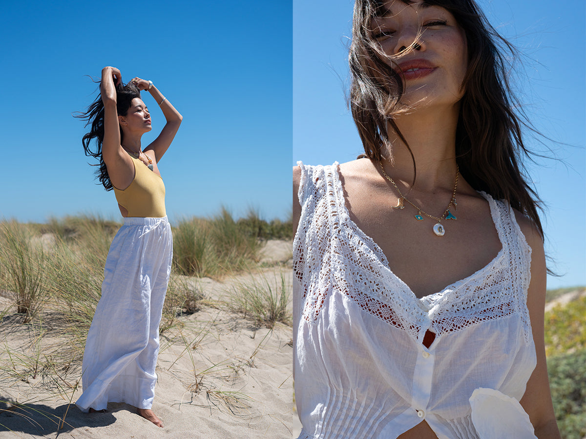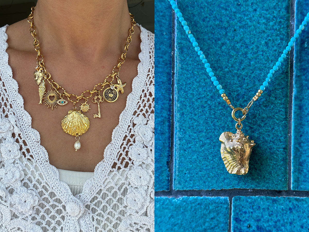 Her Wave sources materials globally, from markets in Lisbon and vintage stores in LA to shells from the beaches in the Hamptons. Each piece reflects a blend of influences and inspirations, handpicked to create something truly unique. The result is jewelry that tells a story as individual as the person wearing it.
